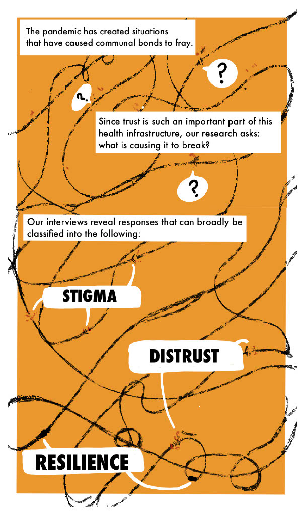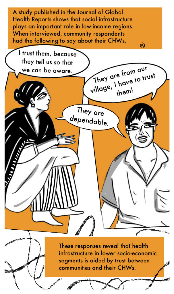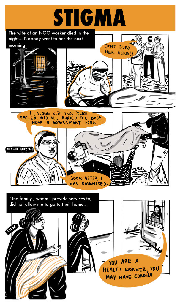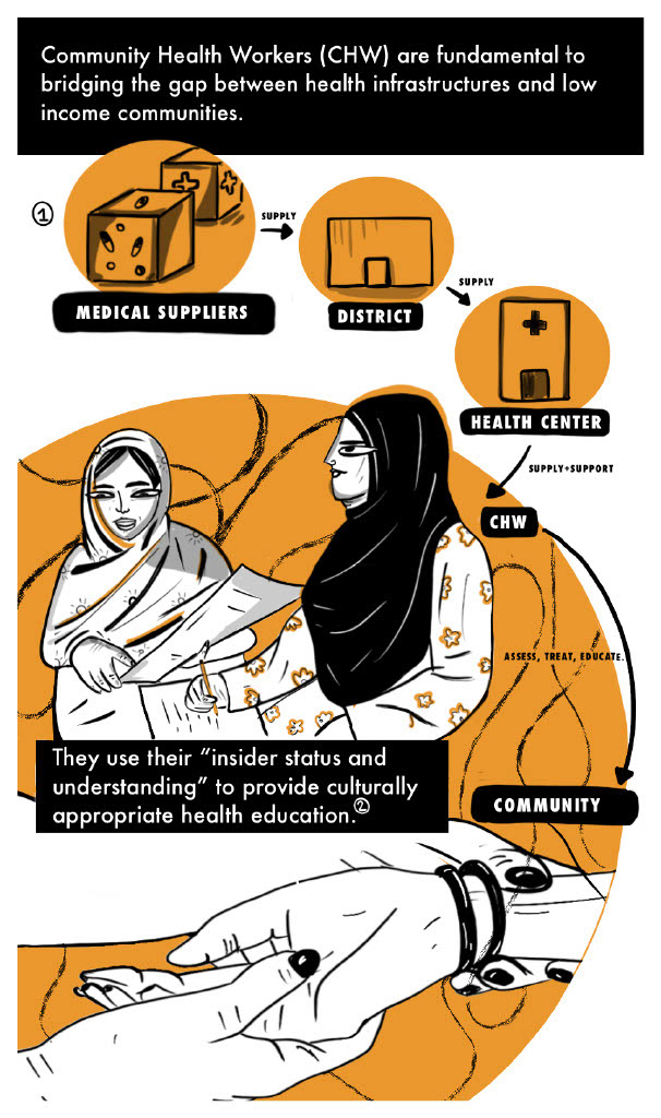 Learning from health seeking experiences of vulnerable populations across urban and rural settings in these countries, Project ARC sought to inform global health systems. The following excerpts are from a comic I created to depict early research findings in a way that was accessible and engaging, while also centering the people behind the data. I referenced local folk art, news articles, videos and images, to capture the everyday reality of the pandemic's impact on low-income communities in Bangladesh.